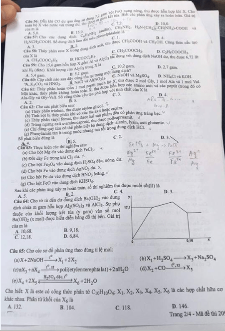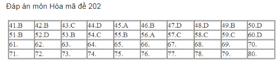 Sau đây Ban tư vấn tuyển sinh Trường Cao đẳng Y dược Pasteur TPHCM xin gửi tới sĩ tử đáp án đề thi tham khảo Môn Hoá mã đề 209, 202,206.